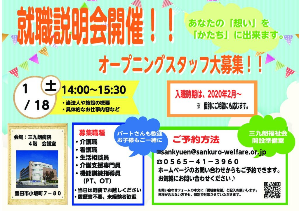 就職説明会のお知らせ 1月18日(土)に就職説明会を開催をいたします!... -