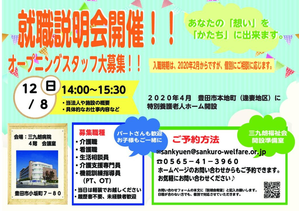 12月8日(日)に就職説明会を開催いたします!! 場所は三九朗病院4階...
