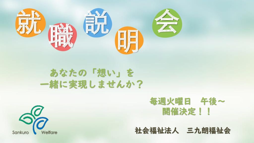 先日、お知らせさせて頂いた「9月28日(土) 就職説明会」の日が近づいてまい... -