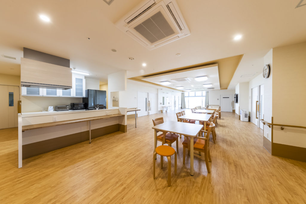 落ち着いた雰囲気の個室と、ふれあいや憩いの場となる共有スペースなど、快適にお過ごしいただく設備が整っています。